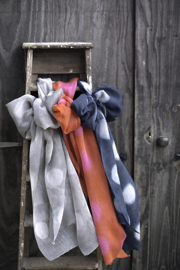 Kathryn produces capsule collections of luxury scarves, bespoke pieces, art textiles and works to commission. If you would like to order a scarf from the gallery, please contact Kathryn.